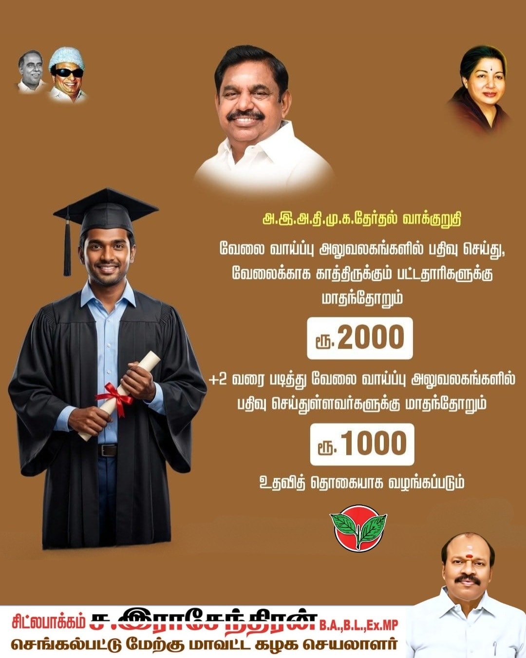 அ.இ.அ.தி.மு.க இரண்டாம் கட்ட தேர்தல் வாக்குறுதி *மாணவர் கல்வி கடன் ரத்து செய்யப்படும்*. சிட்லபாக்கம்.ச.இராசேந்திரன் B.A.,B.L.,Ex.MP #செங்கல்பட்டு_மேற்கு_மாவட்டம்