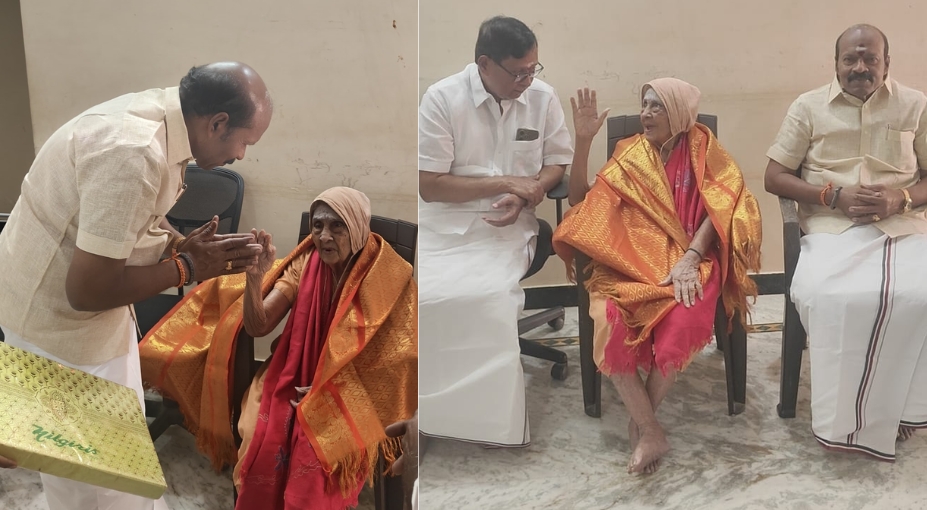 பீர்க்கன்காரணை பகுதியைச் சேர்ந்த 102 வயதுடைய திருமதி.ருக்மணி அம்மாள் அவர்களை நேரில் சந்தித்து ஆசி பெற்ற தருணம்.