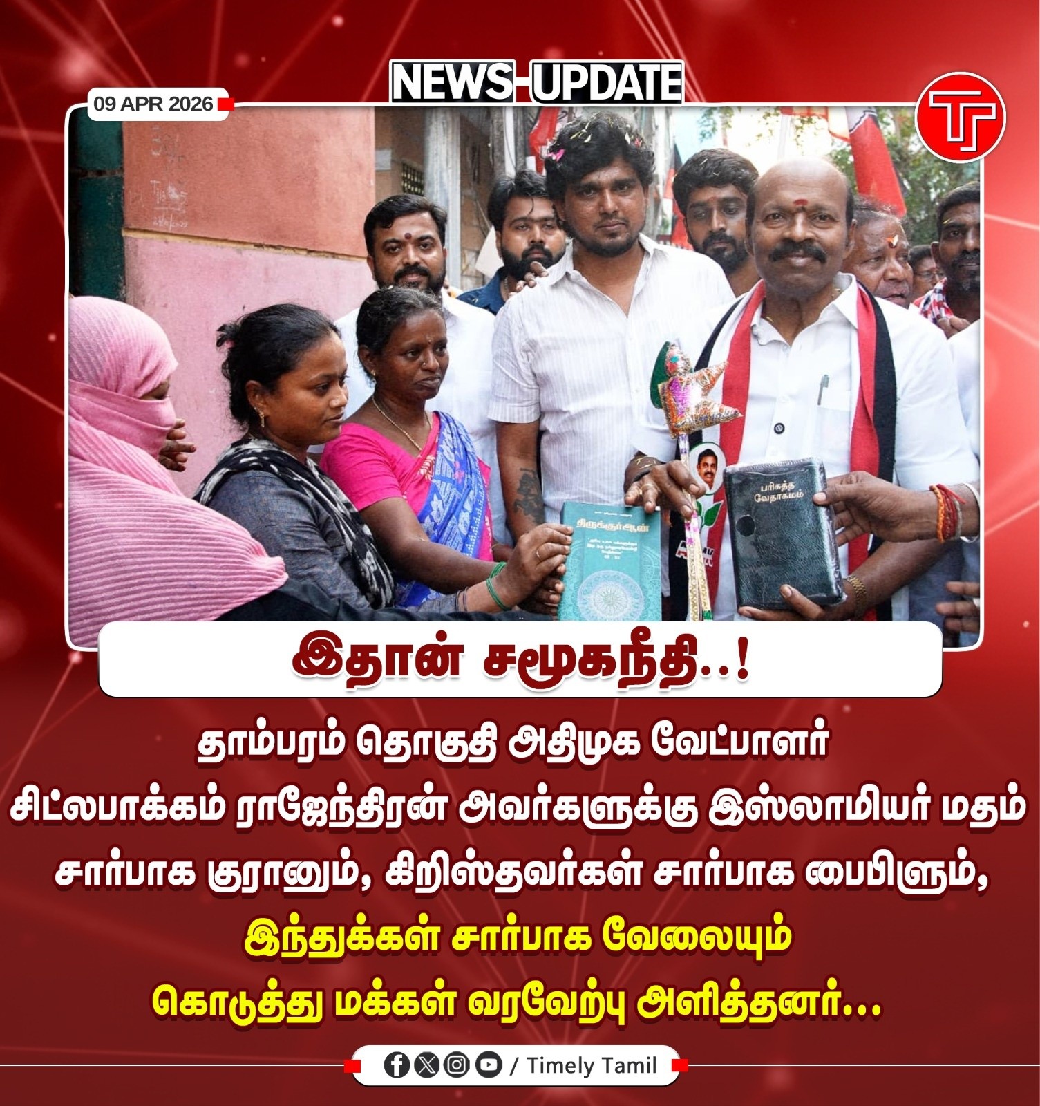 சமூக நீதி காக்கும் மனம் கொண்டவர் தான் உண்மையான மனிதன்.” என்கின்ற தத்துவத்திற்கு ஏற்ப எடுத்துக்காட்டாக திகழ்பவர் தாம்பரம் சட்டமன்ற தொகுதி வெற்றி வேட்பாளர் மரியாதைக்குரிய அண்ணன் வழக்கறிஞர் திரு.சிட்லபாக்கம் ச.இராசேந்திரன் B.A.,B.L.,Ex.M.P., அவர்களுக்கு தாம்பரம் தொகுதி மக்கள் கிழக்கு தாம்பரத்தில் நடைபெற்ற தேர்தல் பிரச்சாரத்தின் போது ஒற்றுமையை வெளிப்படும் விதமாக மிக சிறப்பான முறையில் வரவேற்பு அளித்தனர்...*